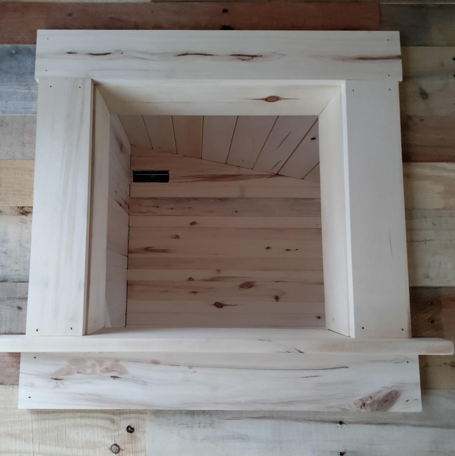 If electrical work is already part of the structure or installation, different fixtures and styles can be considered, with different price points depending on your electrician. In a free-standing wood-fired backyard sauna, our preference is to forego any electrical hookup. An interior “lantern window” with a rechargeable light is a great way to illuminate an outdoor sauna.
